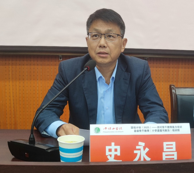 史永昌在开班典礼上致辞,他首先代表学校向来自全省各地的参训学员表示最热烈的欢迎,并介绍了我校的办学历史、学科专业特色以及继续教育工作的优势和成效。他指出,国培计划是提升教师队伍整体素质、促进教育公平的重要国家举措,充分体现了党和国家对教师队伍建设的高度重视。本次培训聚焦小学道德与法治课程的教学设计,切中了基础教育改革的要害,着力提升小学思政课教师的专业素养和能力,希望参训学员们珍惜宝贵的学习机会,积极互动交流,将所学所悟转化为教学实践中实实在在的新思路、新方法。