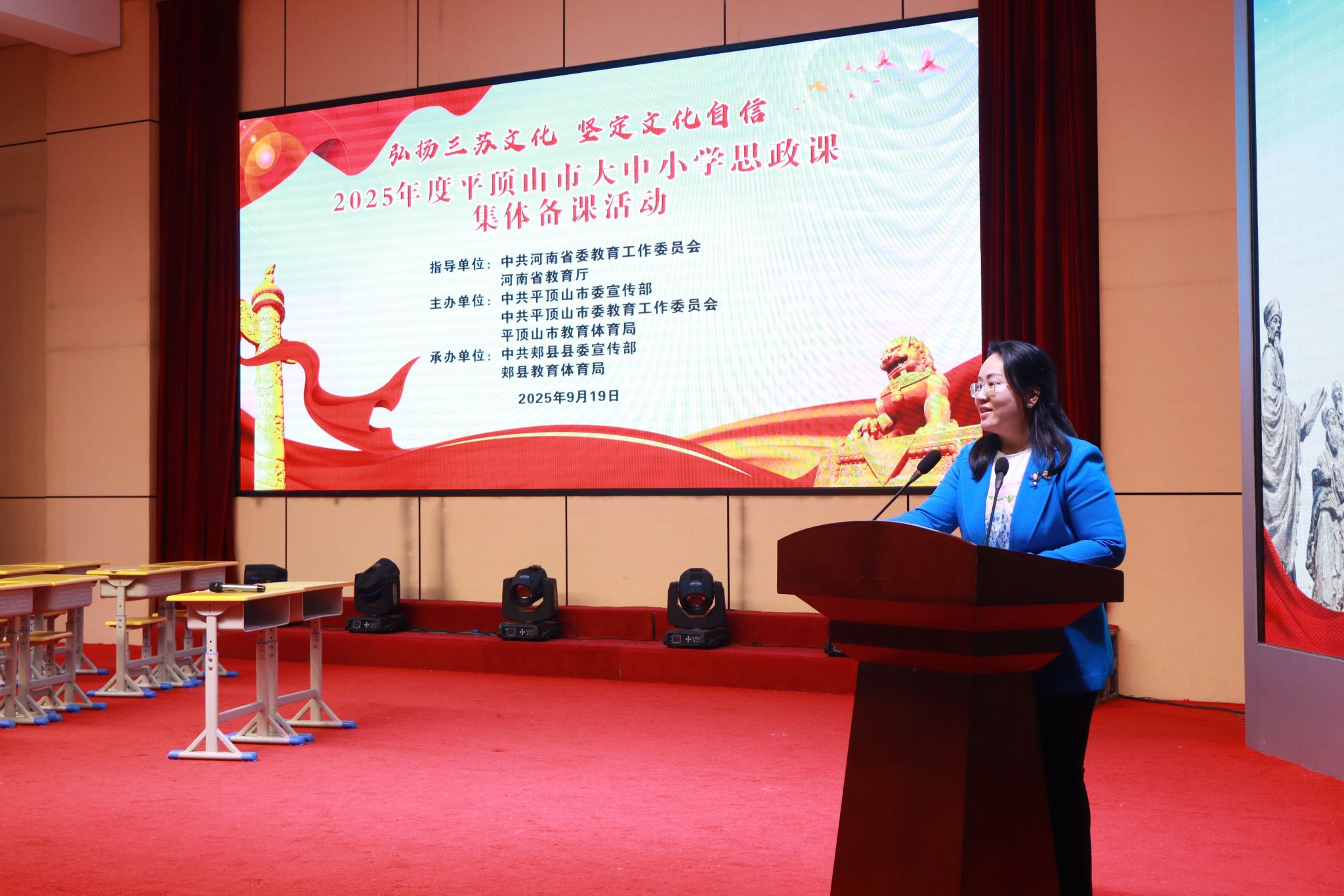 为深入学习贯彻党的二十届三中全会精神和习近平总书记对学校思政课建设的重要指示精神,推动大中小学育人链条的有效衔接、贯通与联动,大力弘扬三苏文化,平顶山市于9月19日在郏县开展了“弘扬三苏文化 坚定文化自信” 2025年度平顶山市大中小学思政课第二期集体备课活动。